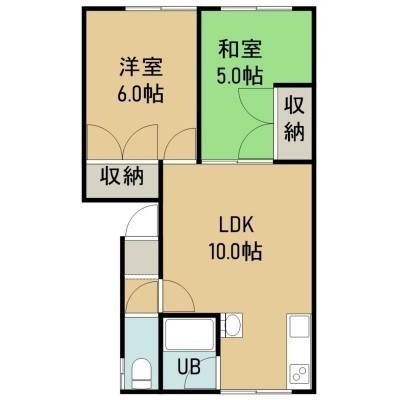 2LDK(43.7m²)└ 2階:LDK10帖 洋室6帖 和室5帖