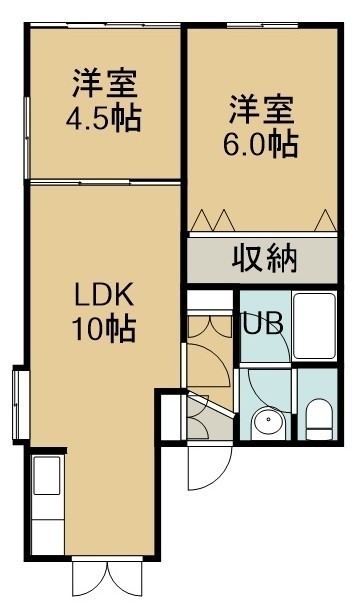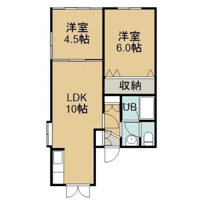 2LDK(45.04m²)└ 2階:LDK10.5帖 和室6帖 洋室4.5帖