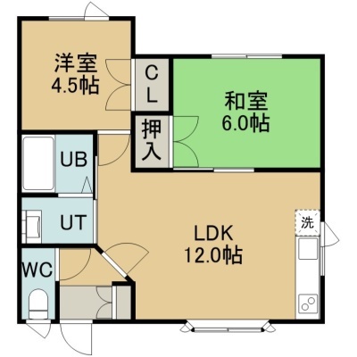 2LDK(45.37m²)└ 2階:LDK12帖 和室6帖 洋室4.5帖