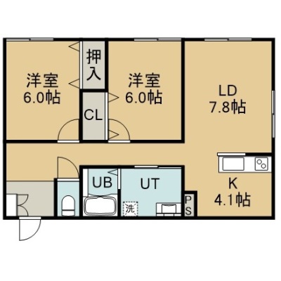 2LDK(60.86m²)└ 1階:LD7.8帖 K4.1帖 洋室6帖 洋室6帖