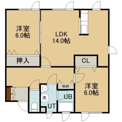 2LDK(65.28m²)└ 3階:LDK14帖 洋室6帖 洋室6帖