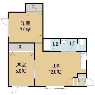 2LDK(52.58m²)└ 2階:LDK12帖 洋室7帖 洋室6帖