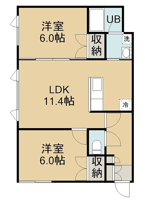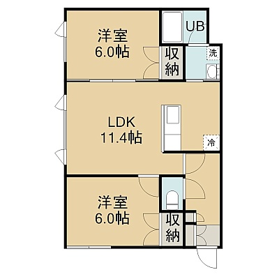 2LDK(53.86m²)└ 1階:LDK11.4帖 洋室6帖 洋室6帖