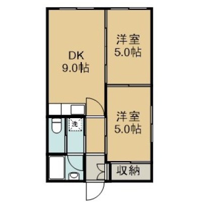 2DK(42.63m²)└ 1階:DK9帖 洋室5帖 洋室5帖