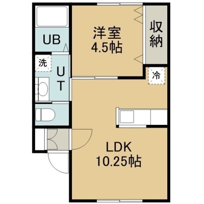 1LDK(33.94m²)└ 2階:LDK10.25帖 洋室4.5帖