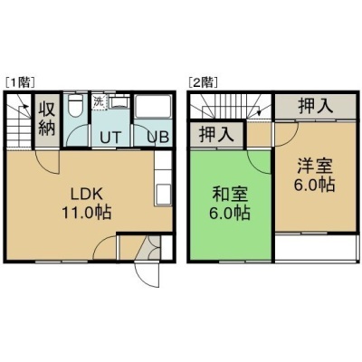 2LDK(54m²)└ 1階:LDK11帖 洋室6帖 和室6帖