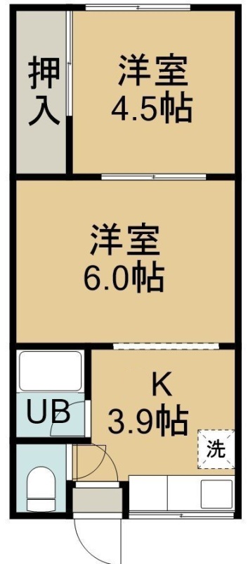 2K(30.27m²)└ 2階:K3.9帖 洋室6帖 洋室4.5帖