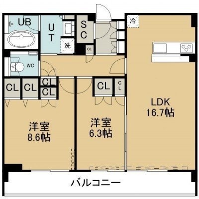 2LDK(71.77m²)└ 17階:LDK16.7帖 洋室8.6帖 洋室6.3帖