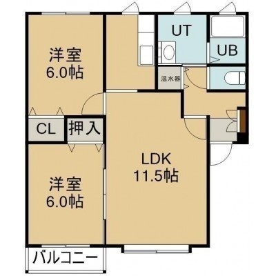 2LDK(58.38m²)└ 1階:LDK11.5帖 洋室6帖 洋室6帖