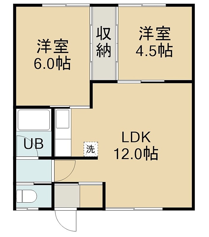 2LDK(47.2m²)└ 2階:DK12帖 洋室6帖 洋室4.5帖