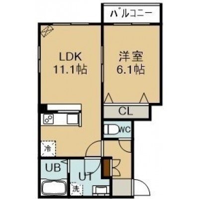 1LDK(39.5m²)└ 4階:LDK11.1帖 洋室6.1帖