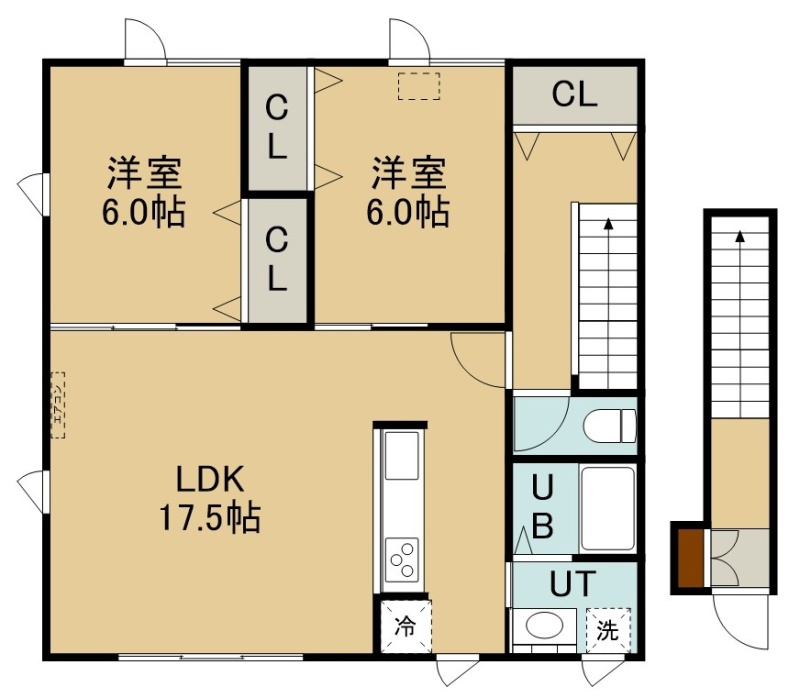 2LDK(67m²)└ 2階:LDK17.5帖 洋室6帖 洋室6帖