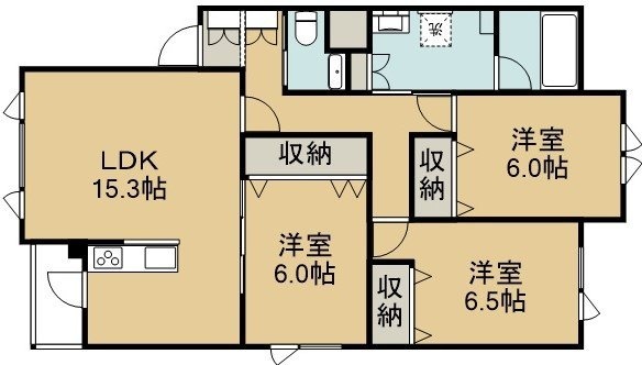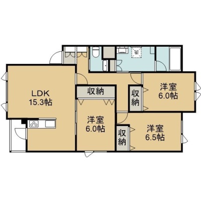 3LDK(81.14m²)└ 2階:LDK15.3帖 洋室6.5帖 洋室6帖 洋室6帖
