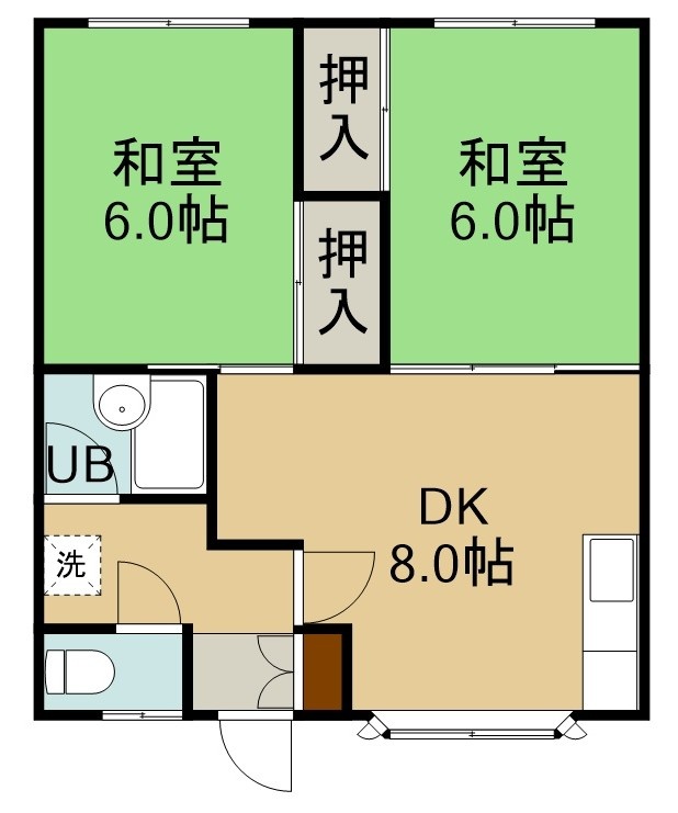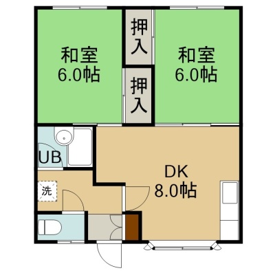 2DK(42.9m²)└ 1階:DK8帖 和室6帖 和室6帖