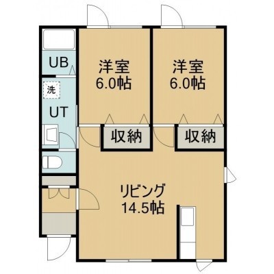 2LDK(57.76m²)└ 1階:LDK14.5帖 洋室6帖 洋室6帖