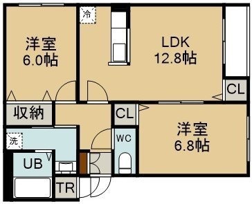 2LDK(59.27m²)└ 3階:LDK12.8帖 洋室6.8帖 洋室6帖