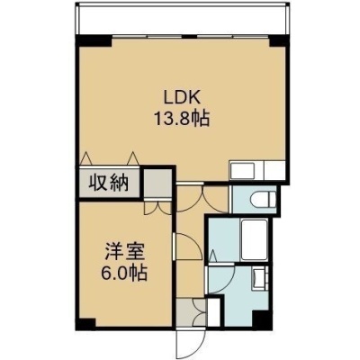 1LDK(45m²)└ 6階:LDK13.8帖 洋室6帖