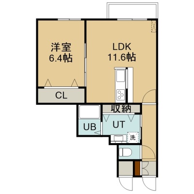 1LDK(46.89m²)└ 2階:LDK11.6帖 洋室6.4帖