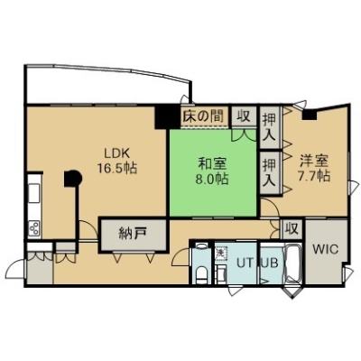 2LDK(105.45m²)└ 3階:LDK16.5帖 和室8帖 洋室7.7帖