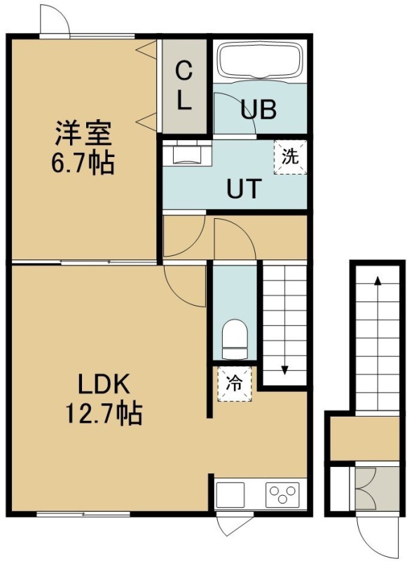 1LDK(52.17m²)└ 2階:LDK12.7帖 洋室6.7帖