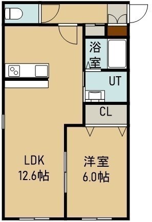 1LDK(44.1m²)└ 4階:LDK12.6帖 洋室6.1帖