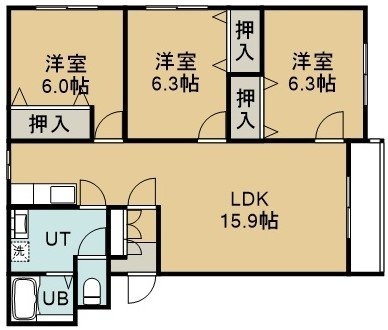 3LDK(71.6m²)└ 3階:LDK15.9帖 洋室6.3帖 洋室6.3帖 洋室6帖