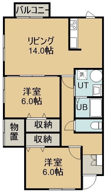 2LDK(61.05m²)└ 2階:LDK14帖 洋室6帖 洋室6帖