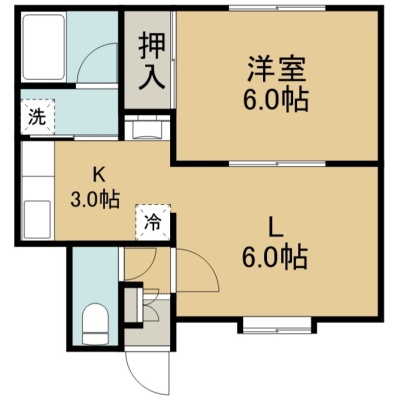 1DK(35.1m²)└ 2階:L6帖 K3帖 洋室6帖