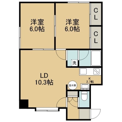 2LDK(52.06m²)└ 2階:LD10.3帖 K2.7帖 洋室6帖 洋室6帖