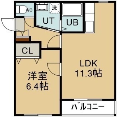 1LDK(42.12m²)└ 2階:LDK11.3帖 洋室6.4帖