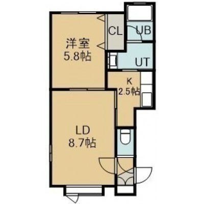 1LDK(36.36m²)└ 1階:LD8.7帖 K2.5帖 洋室5.8帖