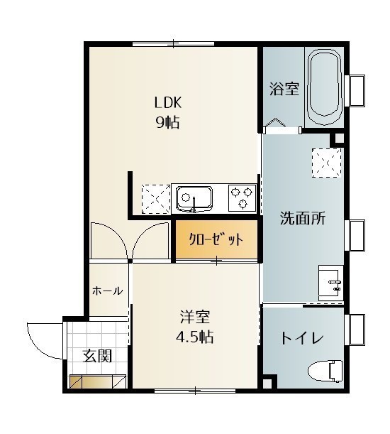 1DK(40.29m²)└ DK9帖 洋室4.5帖