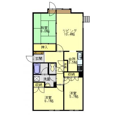 3LDK(70.8m²)└ LD10.4帖 K3.5帖 洋室6.1帖 洋室5.7帖 和室6帖