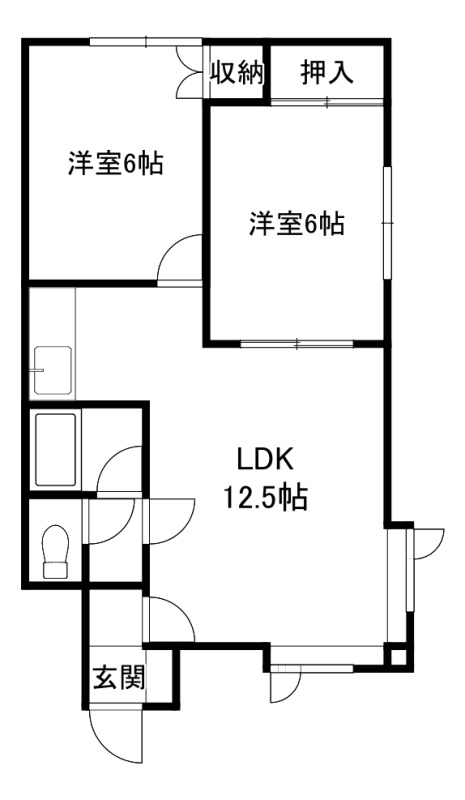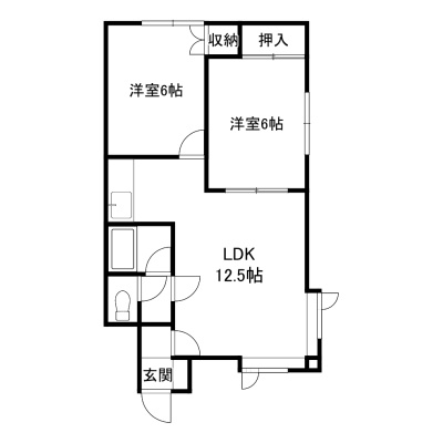 2LDK└ 1階:LDK12.5帖 洋室6帖 洋室6帖