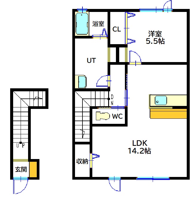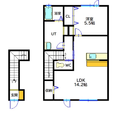 1LDK(49.98m²)└ 2階:LDK14.2帖 洋室5.5帖