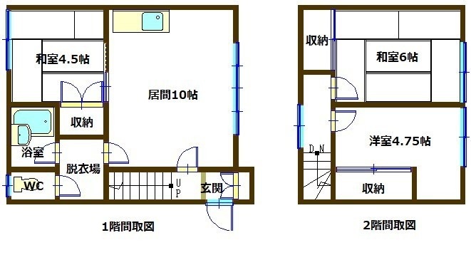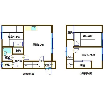 3DK(60.03m²)└ 1階:L10帖 和室4.5帖 / 2階:和室6帖 洋室4.75帖