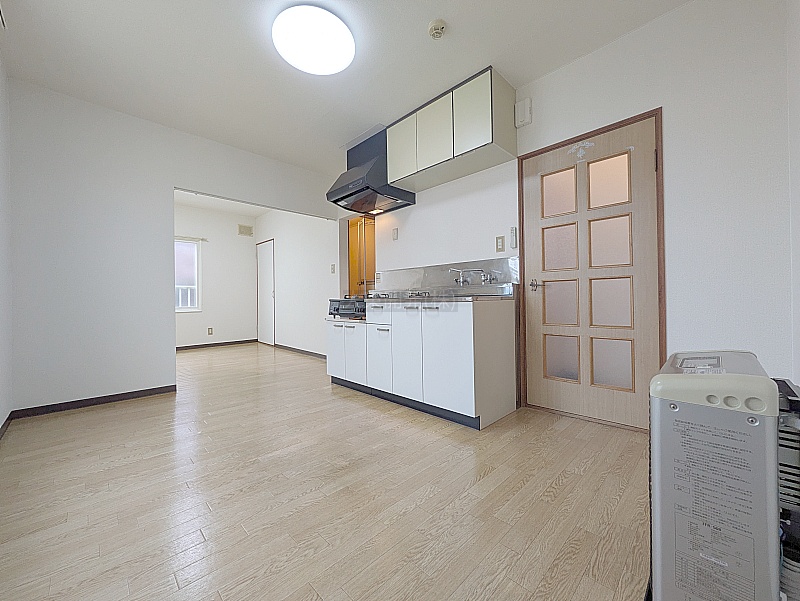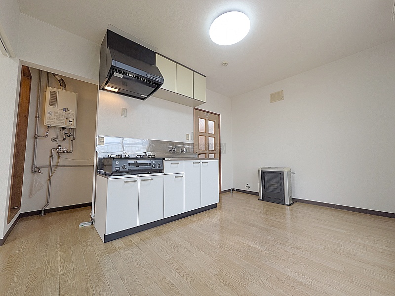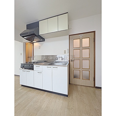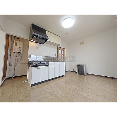 キッチンが壁付けになっており、空間を広く使える工夫がされています♪収納力が豊富なのも嬉しいポイント!