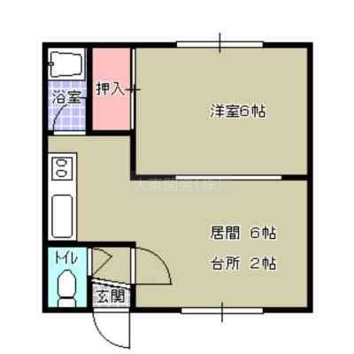 1DK└ L6帖 K2帖 洋室6帖 / 6x6x2K