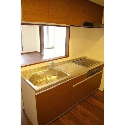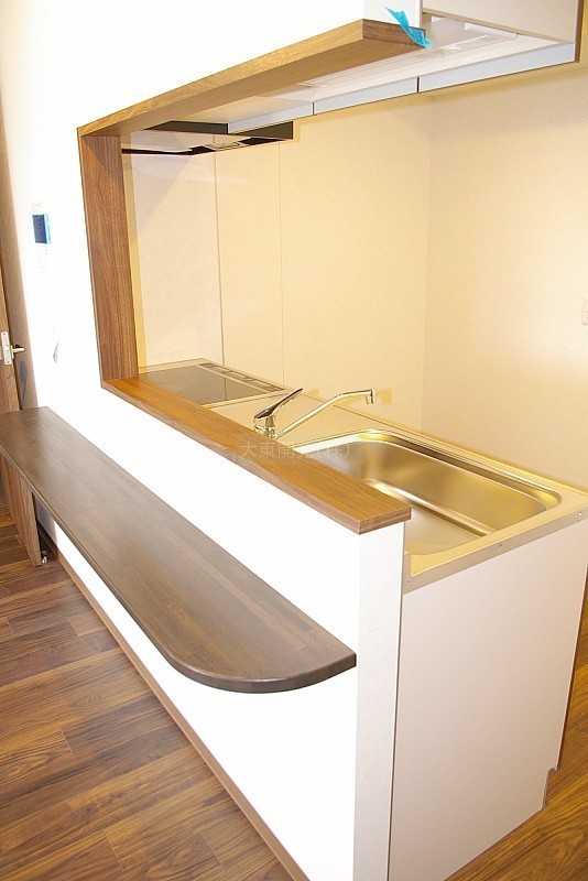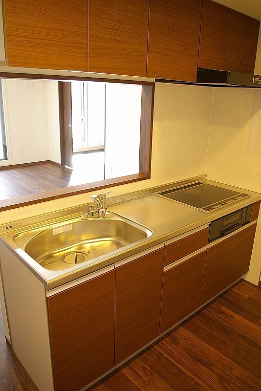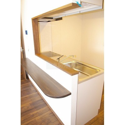 ★木カウンタのついた対面式キッチンです。