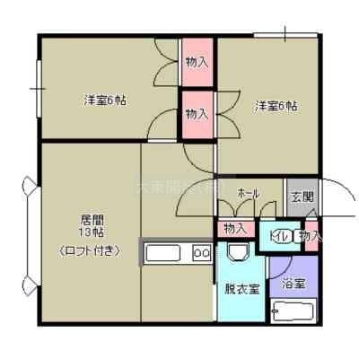 2LDK(52.85m²)└ LDK13帖 洋室6帖 洋室6帖