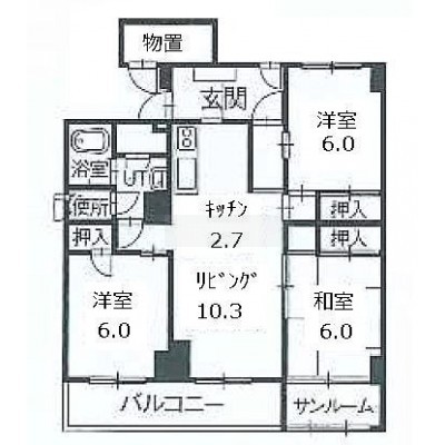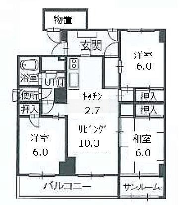 3LDK└ L10.3帖 洋室6帖 洋室6帖 和室6帖 K2.7帖 / 10.3x6x6x4.5