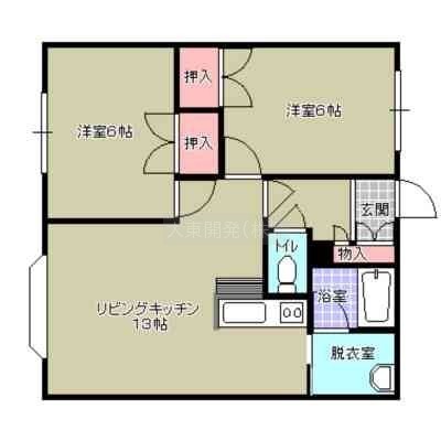2LDK(54.29m²)└ LK13帖 洋室6帖 洋室6帖 / 13x6x6