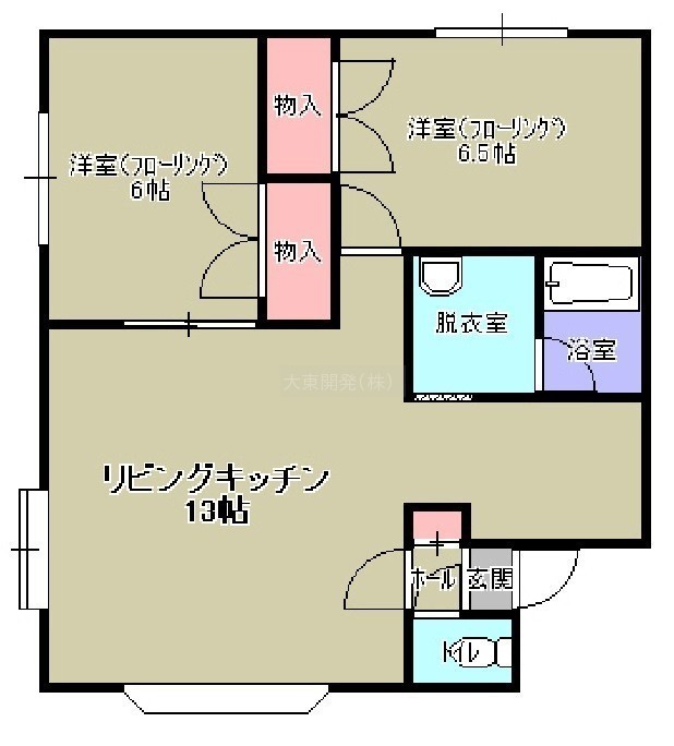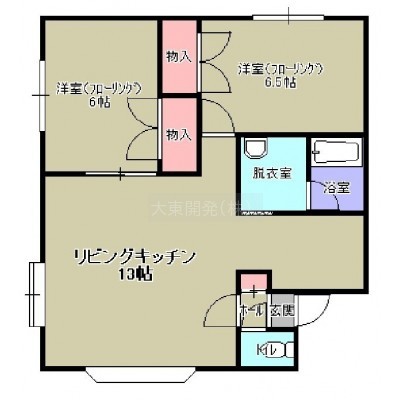 2LDK(53.8m²)└ LDK13帖 洋室6.5帖 洋室6帖