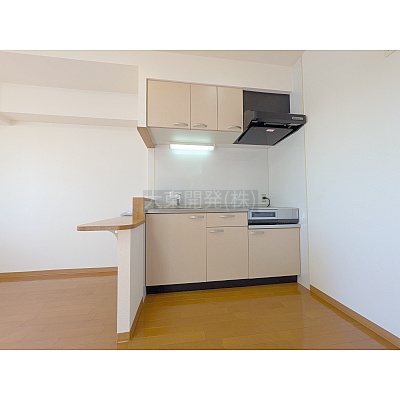 キッチンが壁付けになっており、空間を広く使える工夫がされています♪収納力が豊富なのも嬉しいポイント!