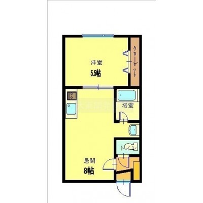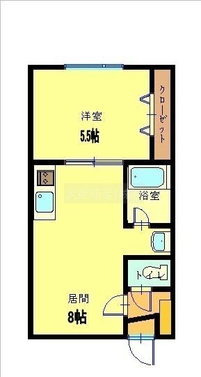 1DK(30m²)└ DK8帖 洋室5.5帖