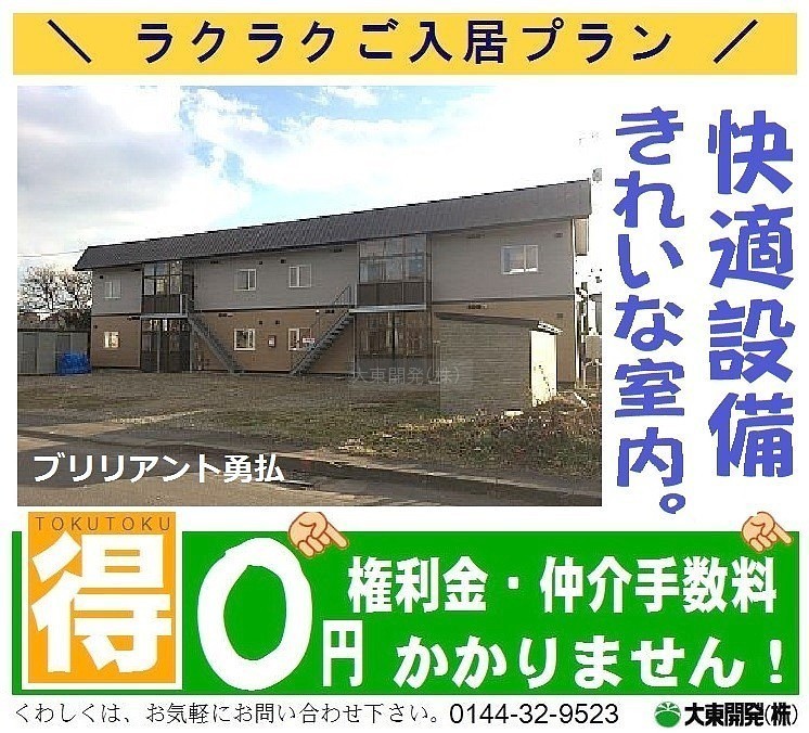 ここに注目!★月額賃料33,000円★おどろきのご入居プラン【権利金・敷金・仲介料¥0!】さらに当月分賃料サービス♪ (゜o゜) ★駐車場は縦列駐車OK(車種によります)★10帖×8帖のゆとりの室内に、経済的で安心の灯油ボイラー・追いだき機能付きのユニットバス・灯油ストーブ付きです。広く気持ちの良い室内をぜひご覧ください。◆【創業53年】、管理戸数6000室、快適な室内作りと管理を目指す【大東開発㈱】が皆様の新生活を心より応援いたします。