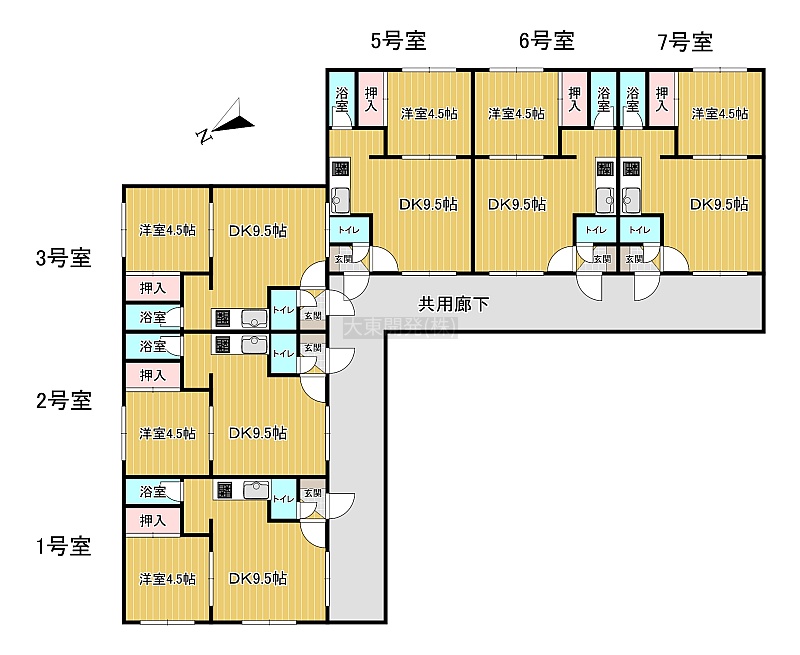 1DK(28.35m²)└ DK9.5帖 洋室4.5帖
