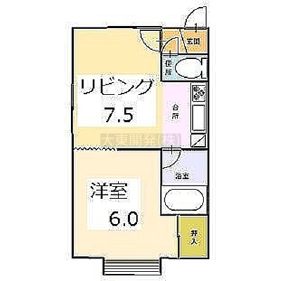 1DK(33.8m²)└ L7.5帖 洋室6帖