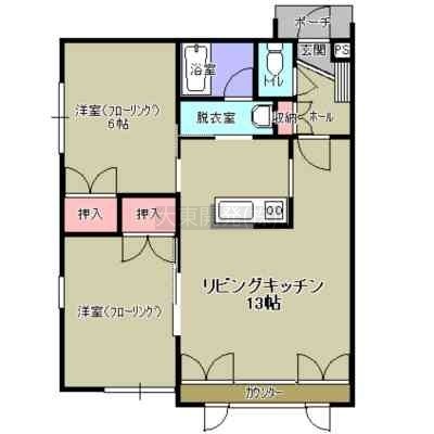 2LDK(56.49m²)└ LDK16帖 洋室6帖 洋室6帖