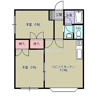 2DK(46.37m²)└ LK10帖 洋室6帖 洋室6帖 / 10×6×6